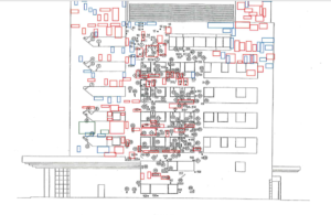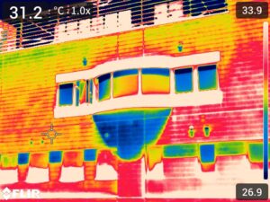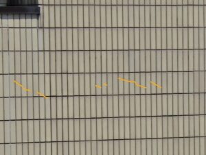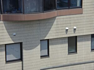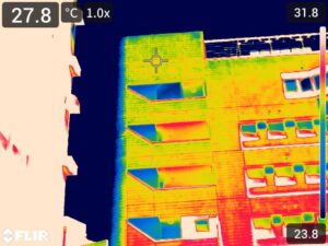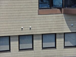 今年3月にゼネコンさんがゴンドラを使い打診による点検を行い 出窓がある下やゴンドラでは点検できない箇所を赤外線カメラとドローンを 使っての再調査という形でお話をいただきました 。