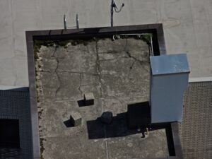 タイルの亀裂やコケが目立ちます。外壁から判断してもいつ雨漏れが起きてもおかしくない劣化状況です。