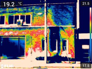 赤外線カメラと打診で浮きや水分の滞留を調査しました。